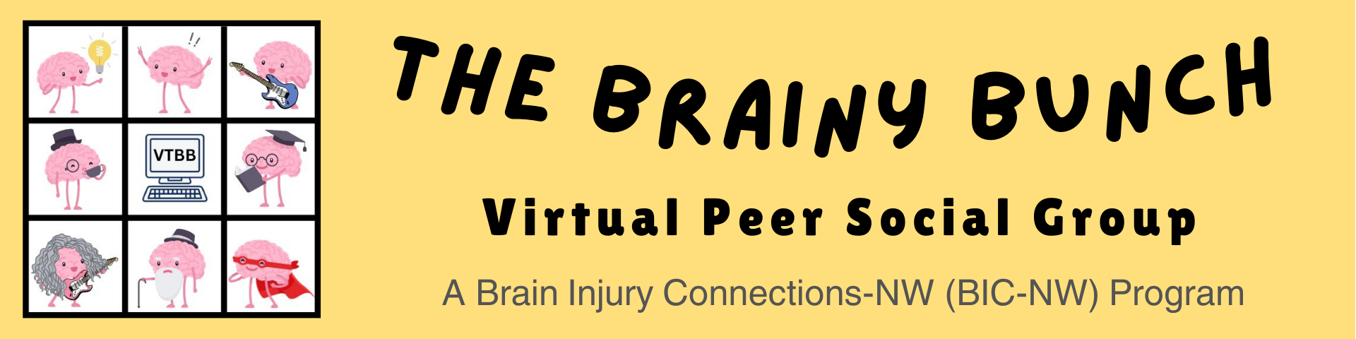 The Virtual Tuesday Brainy Bunch (VTBB) is a weekly virtual social group that meets every Tuesday from 12:00 noon to 1:00 p.m. (Pacific Time Zone). It is a light-hearted social hour and a safe environment for anyone affected by brain injury to come and connect.